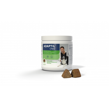 ADAPTIL Chew est un aliment complémentaire destiné à calmer rapidement les chiens lorsqu'ils font face à des situations stressantes.