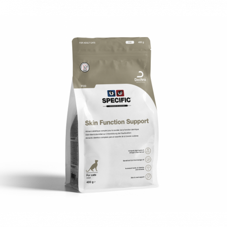 SPECIFIC™ Skin Function Support est un aliment diététique complet destiné au chat adulte et qui soutient la fonction dermique en cas de dermatose et de dépilation.