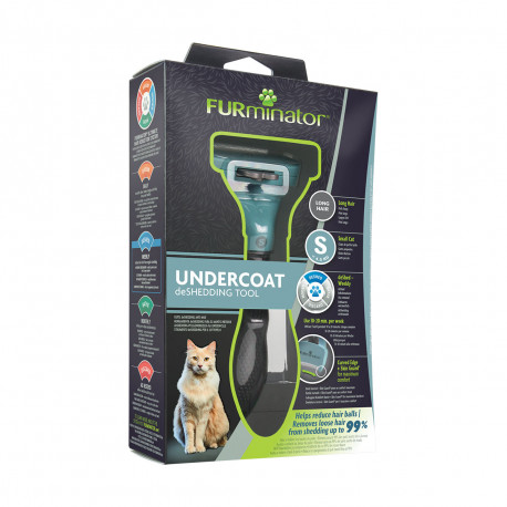 FURminator Chat – Poil Long Taille S est une brosse anti-mue professionnelle, spécialement conçue pour les chats de petite taille (<4,5 kg) à poils longs. Grâce à sa technologie de pointe, elle élimine jusqu'à 90 % des poils morts et sous-poils, réduisant ainsi la formation de boules de poils et maintenant un pelage sain et brillant.