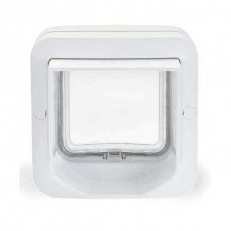 Indications utilisation : Quand un animal s'approche de la chatière, celle-ci scanne et reconnaît la puce électronique ou le médaillon d'identification par radiofréquence de votre animal et ne s'ouvre que pour lui. Entrée sélective : tous les animaux peuvent sortir. Longévité des piles jusqu'à 12 mois (4 piles AA non incluses). Fonctionne avec toutes les puces électroniques courantes et les médaillons d'identification par radiofréquence (non inclus), (vérificateur de compatibilité). Programmation simple à l'aide d'un bouton.Peut être installée sur des portes, des vitres ou des murs.Stocke jusqu'à 32 identités d'animaux en mémoire. Verrouillage manuel permettant d'empêcher votre chat d'entrer ou de sortir. Témoin lumineux indiquant que les piles sont déchargées.