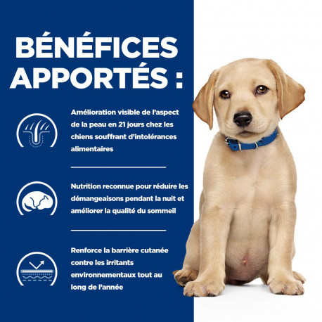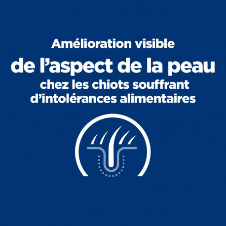 Les croquettes Prescription Diet Derm Complete Puppy sont spécialement formulées pour favoriser la santé de la peau et prendre en charge les allergies alimentaires et environnementales chez le chiot