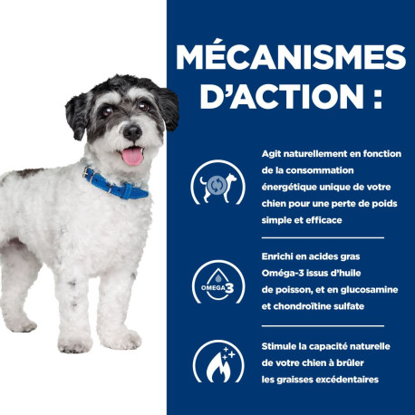 Une longueur d'avance pour une vie meilleure. Hill's PRESCRIPTION DIET Metabolic + Mobility Mini Weight Management Aliment Sec pour Chien au Poulet est spécialement formulé par les nutritionnistes et les vétérinaires de Hill's pour favoriser la perte de poids, le maintien du poids et la santé ariculaire de votre chien.