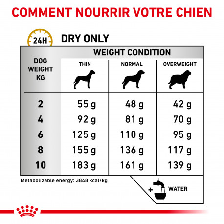 Urinary S/O Small Dog est un aliment diététique complet pour chiens, formulé pour dissoudre les calculs de struvite et réduire les récidives grâce à ses propriétés acidifiant l’urine, sa faible teneur en magnésium et un apport modéré en protéines mais de haute qualité. Recommandations: avant utilisation, l’avis d’un vétérinaire est recommandé. Utiliser Urinary S/O Small Dog pendant 5 à 12 semaines pour dissoudre les calculs de struvite et jusqu’à 6 mois pour réduire les récidives. Le chien devra ensuite être examiné régulièrement par le vétérinaire pour évaluer la pertinence d’une recommandation nutritionnelle sur le long terme. De l’eau fraîche doit toujours être à disposition de l’animal.