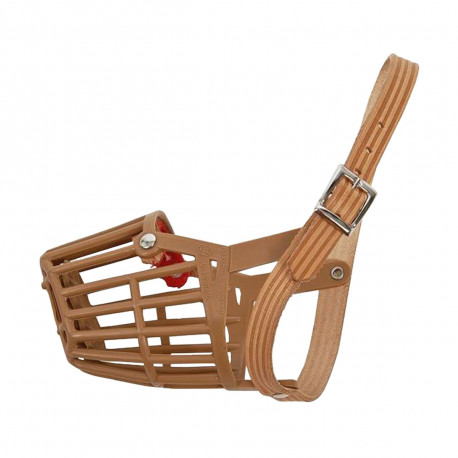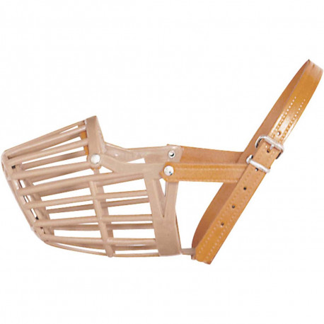Renforcée au niveau du museau. Sangle en cuir.