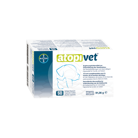 Atopivet 60 capsules est un complément alimentaire spécialement conçu pour les chiens et les chats présentant des troubles cutanés tels que démangeaisons, dépilation excessive ou peau fragile, afin de soutenir la barrière cutanée et améliorer la qualité du pelage.