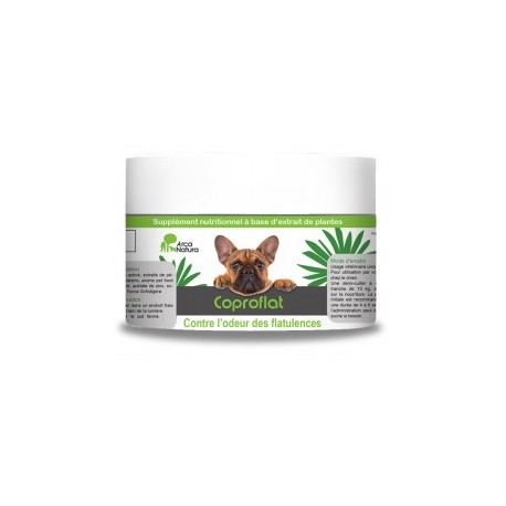 Coproflat Chien est destiné aux chiens adultes de toutes races qui présentent des flatulences marquées ou des odeurs digestives gênantes, notamment : les chiens de race brachycéphale (carlin, bouledogue, pékinois) qui sont plus sujets à l’aérophagie, les chiens soumis à des repas rapides, à un excès de protéines fermentescibles, à des changements alimentaires fréquents, ou encore les chiens stressés ou en catégorie « tourisme/pension ». Il est recommandé de demander l’avis de votre vétérinaire avant utilisation si votre chien présente une insuffisance pancréatique, une entérite aiguë, une obstruction intestinale, des vomissements persistants, une maladie hépatique sévère ou un dérèglement métabolique important. Dans ces cas, la flatulence peut être le symptôme d’une affection grave nécessitant une prise en charge professionnelle.