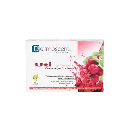 Dermoscent® Uti-Zen® est un aliment complémentaire appétent pour le confort urinaire. Ses tablettes sécables permettent une grande facilité d’utilisation.