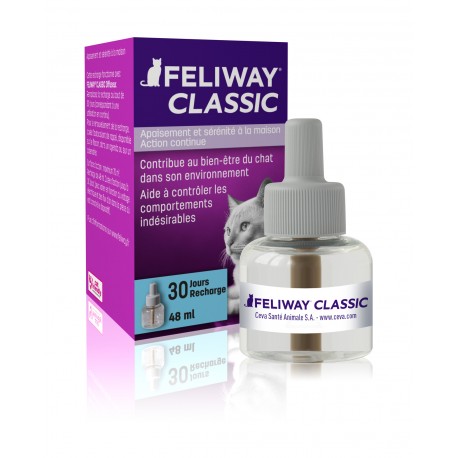 Recharge de feliway 48 ml pour le diffuseur, efficace pendant 30 jours et pouvant traiter jusqu'à 70 M² de surface.
