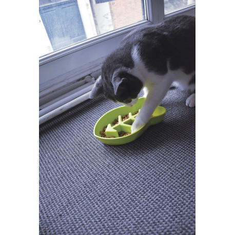 Gamelle pour chien et chat favorisant une alimentation plus lente et plus naturelle, jusqu'à 10 fois plus longue.