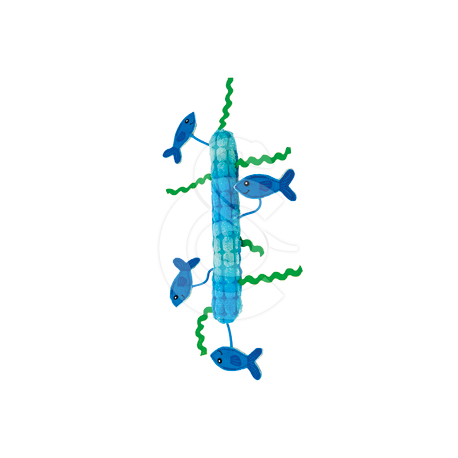 Les algues ondulées et le banc de poissons brillants, tape-à-l'oeil, et attachés par un élastique, encouragent les coups de patte et les bonds dynamiques pour des aventures « sous-marines ». Ils sont également parfaits pour récompenser les instincts de chasse et de capture.