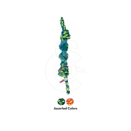 Grâce à la corde tendeur interne de KONG Rope Bunji, les séances de traction et de lancer de ce jouet solide, fait de noeuds et de tortillons, deviennent encore plus dynamiques.