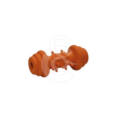 Jouet en forme d'haltère de haute qualité, très résistant, muni de picots sur la partie centrale.