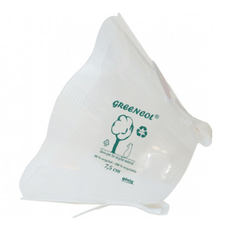 Transparent, polypropylène recyclé à 80%, recyclable à 100%. Fermeture rapide. Pourtour ondulé.