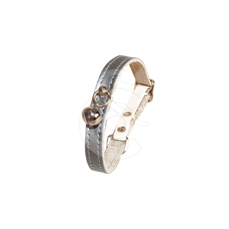Ce collier en cuir irisé s'adapte à tous les cous, est confortable et est muni d'un grelot doré !