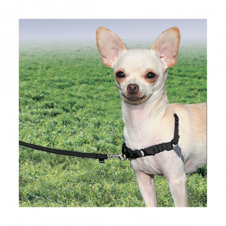 Composition : L'anneau de fixation pour laisse nylon 1,8 m (incluse), positionné sur l'avant, stoppe la traction en guidant le chien vers le côté et en redirigeant son attention vers son maître. Equipé de boucles à fermeture rapide, permettant de le mettre et retirer facilement. Agrémenté de 4 points de réglage pour un ajustement optimal et un meilleur confort. Tour de poitrail : 38 - 51 cm. Pour Jack Russell, Yorkshire Terrier...