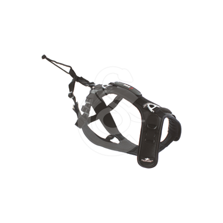 Un harnais 2 en 1 permettant une utilisation en promenade traditionnelle et une pratique sportive grâce à une sangle de traction amovible, avec 3 points d’attaches pour optimiser la répartition de la traction.