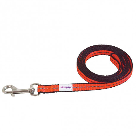 Laisse pour chat, base noir avec une bande colorée et un liseré fluorescent au centre.
