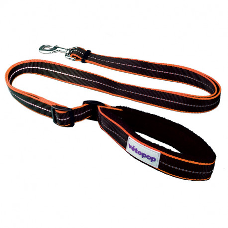 Laisse réglable pour chien, base noire avec une bande colorée et un liseré fluorescent.