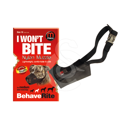 Fabriquée en nylon solide avec des coutures résistantes et une ouverture/fermeture rapide en plastique incassable. Comment être certain de commander la bonne taille ? 1. Utiliser un lien, une cordelette ou un mètre ruban pour mesurer le tour de museau. La muselière ne doit pas être serrée. 2. Pour une mesure correcte prendre la mesure à l'extrémité du tour de museau, il faut placer un doigt entre le lien et le museau. Si votre mesure ne correspond pas exactement à une mesure du tableau, il faut prendre la taille supérieure pour référence.
