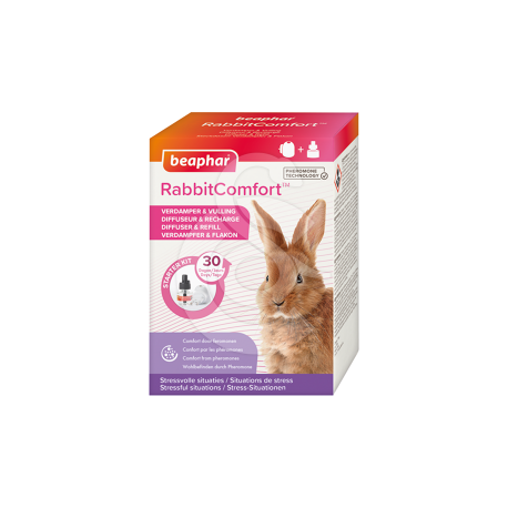 RabbitComfort diffuse un analogue (une copie) de la phéromone apaisante de lapin. Elle est naturellement sécrétée par les lapines lorsqu'elles allaitent. Cette phéromone est porteuse d'un message apaisant qui aide les lapins à avoir une perception rassurante et sécurisante de leur environnement. Le diffuseur convient à toutes les races de lapins et à tous les âges. Utiliser une nouvelle recharge après 30 jours d'utilisation.