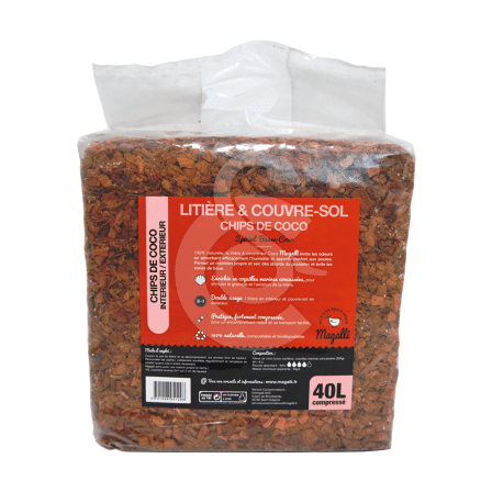 Couvrir le sol de litière en la décompressant sur environ 2 cm de hauteur. Renouveler les parties souillées régulièrement et remplacer en totalité quand cela s'avère nécessaire. 40 L couvrent environ 2m² sur 2 cm de hauteur.