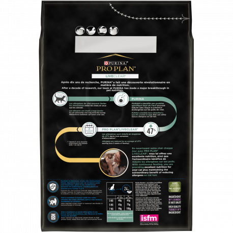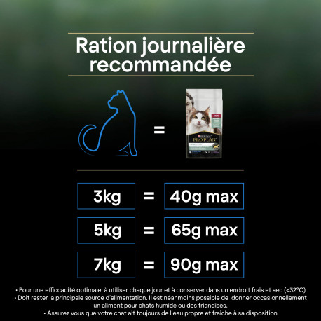 - Réduit en moyenne de 47 % allergènes sur les poils du chat après trois semaines d'alimentation.
