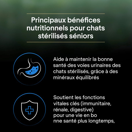 - Aide à maintenir la bonne santé des voies urinaires des chats stérilisés, grâce à des teneurs équilibrées en minéraux.