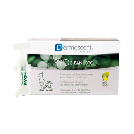 Dermoscent® PYOclean® Oto pour chat, chien et lapin est un nettoyant purifiant et apaisant auriculaire en format monodose pratique et hygiénique.