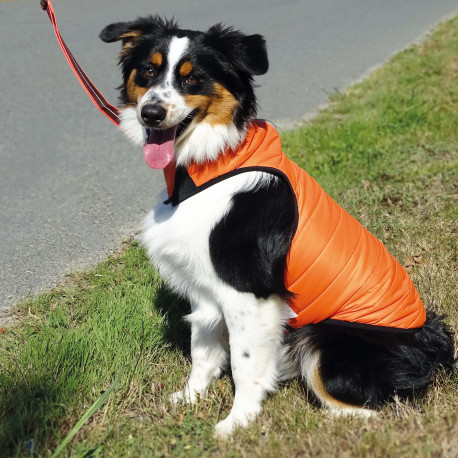 Doudoune réversible orange et grise.